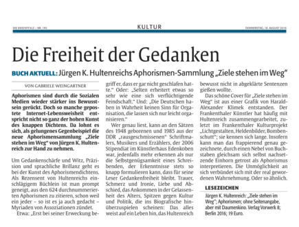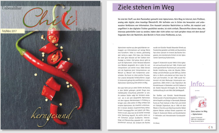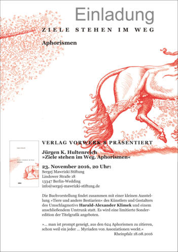 "Ziele stehen im Weg", Aphorismen von Jürgen K. Hultenreich, Berlin, 2016.