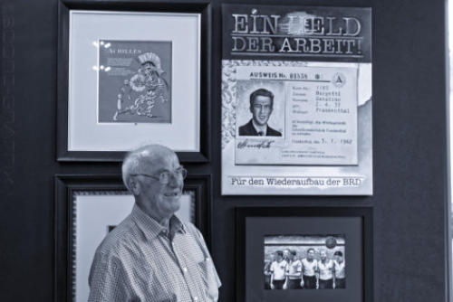 Herr Sabatino Marchetti vor seinem Abbild als erster