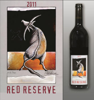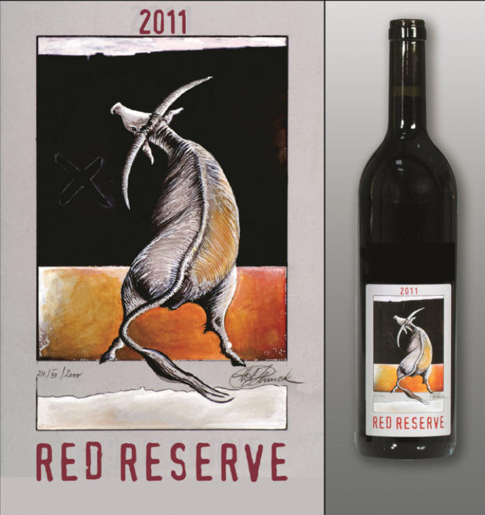 Neuer Rotwein versehen mit dem Kuenstleretikett der Graphik